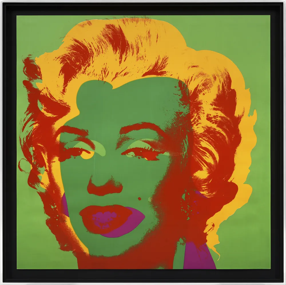 Though deriving from the same image, a promotional photograph for the 1953 film Niagara, the ten works in the Marilyn portfolio are distinct from one another in both colour and composition. Each image was printed from five screens: one that carried the photographic image and four for the different areas of colour. Warhol developed the technique of printing each layer slightly off-register in order to align his work with the common printing processes of commercial media. This method renders Monroe's image as intrinsically reproducible like a logo or brand, revolutionising the tradition of portraiture by openly embracing the mechanically repetitive nature of the modern image.