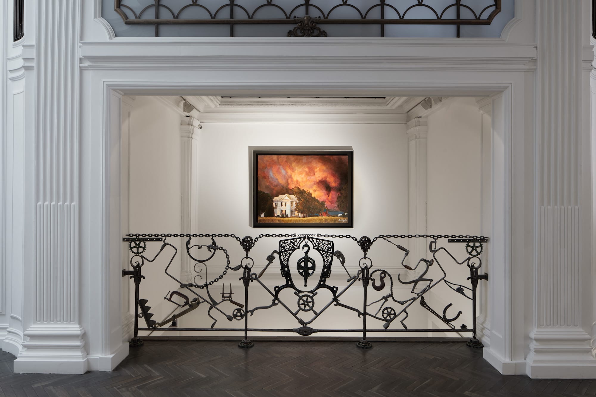 Storm Clouds shows a traditional, countryside house which although unspecified, seems a familiar and recognisable feature of a typically 'American' landscape, surrounded by a sinister, billowing red sky. As author, producer, and broadcaster Bill Flanagan suggests, 'the sky is an important presence in Dylan's work - painted in different colours and textures, each variation changing how we are affected by the entire picture.'