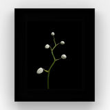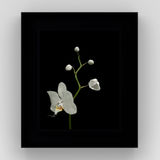 Widespread and diverse, orchids grow naturally across the world. Each flower is bilaterally symmetrical; where each half petal is the mirror of the other. Presented with crisp white petals against the black background, the orchid passes through several growth and blossoming states in reaction to the presence of the viewer whilst pollinating bees and butterflies will make their occasional appearance