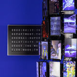 Adopting the form of the biblical Tower of Babel, Dominic Harris’ Feeding Consciousness is a 10ft sculpture that projects the contemporary collective consciousness without bias or prejudice. Harnessing artificial intelligence and datasets, this artwork presents the, up-to-the-minute, the top five trending subjects on Google’s search engine across its 180 screens and accompanying split-flap Solari display. The sculpture remains in a constant state of flux, responding to rapidly changing trends to communicate the chaos of the information age.