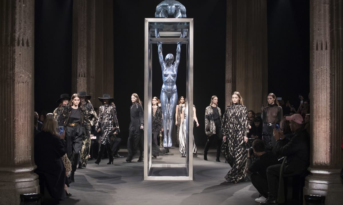 Lorenzo Quinn’s ‘Gravity’ in the centre of the runway at Milan Fashion Week