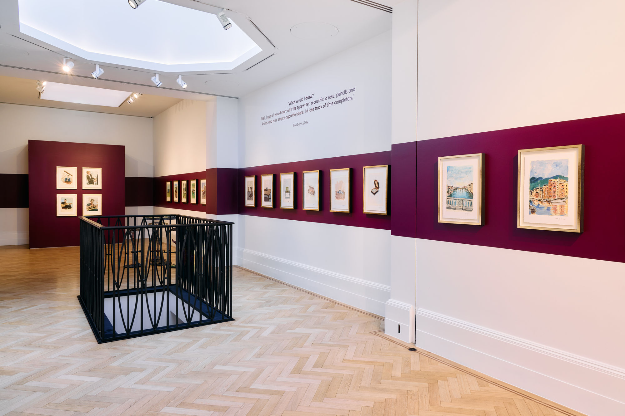 Dylan returned to these drawings between 2023 and 2024, enlivening them with paint and transforming the spontaneous visual idea into a finished work of art. This process has enabled the artist to create paintings that are both refined and finished yet also provide unmodified access to one of the world’s most celebrated creative minds.