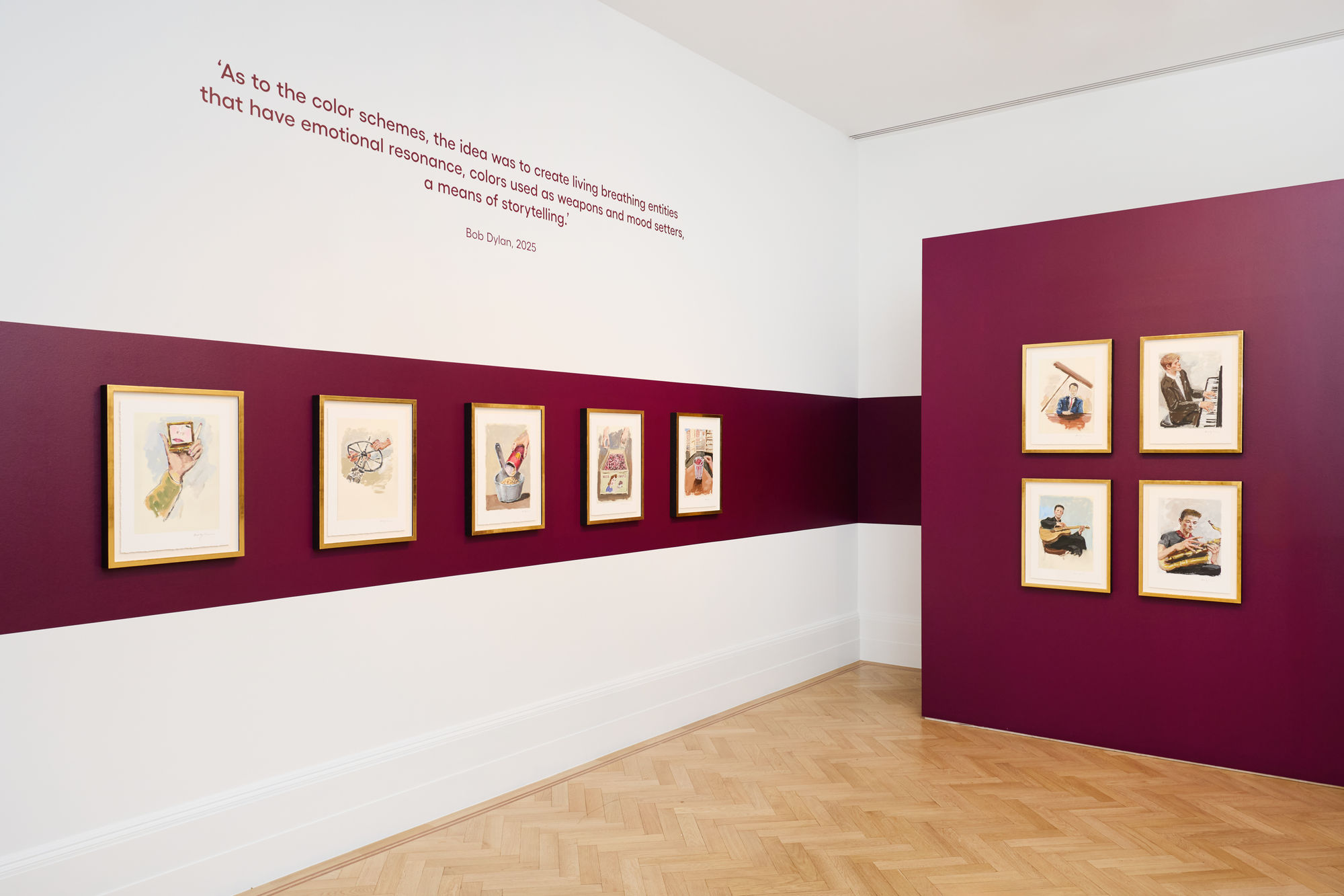 Initially these works were created as drawings, made in spontaneous moments of inspiration whilst Dylan was travelling around the world on the Rough and Rowdy Ways tour (2021-2022). They depict unique characters, interior scenes from a lived perspective, landscapes and intimate still life's that are full of personality.